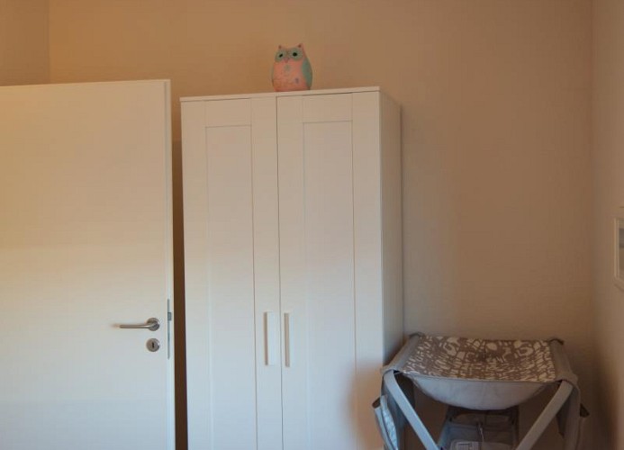 Nachdem Sie durch den kleinen Vorgarten gelaufen sind, sind Sie schon auf dem geräumigen Flur, auf dem Sie den ersten Schrank mit Stauraum für Ihre Sachen finden. Vor allem für Hundebesitzer ist dieser Flur ideal, weil Sie hier Ihren Hund noch sauber machen und abtrocknen können, bevor Sie in die Ferienwohnung gehen.