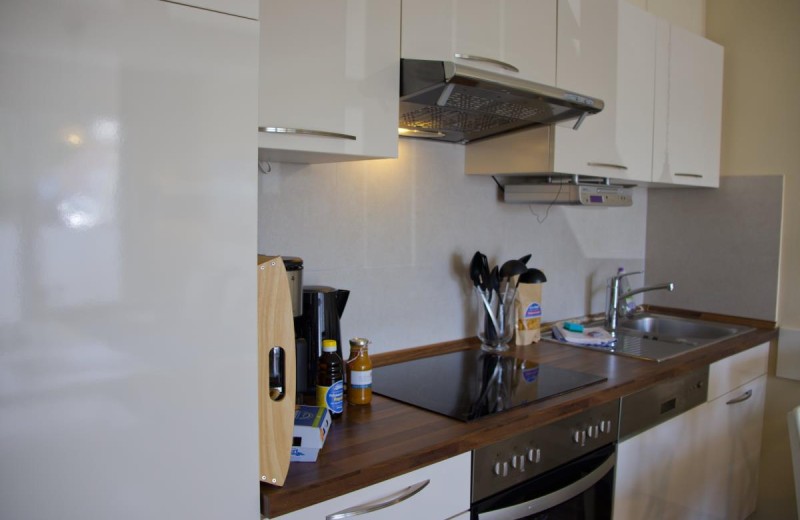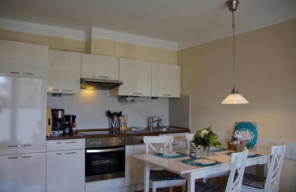 When it's time to eat, you'll find everything you need in the kitchen to conjure up a delicious multi-course meal or to serve the delicacies you've brought with you. There is plenty of space at the dining table. It's also perfect for playing games, having a good chat or putting down your laptop.