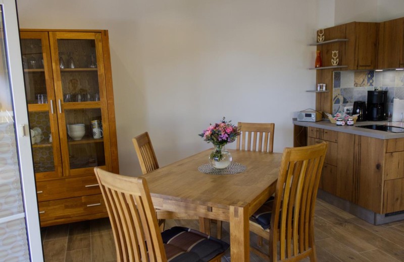 Perhaps you feel like having something to eat and a drink after your trip? Then you'll find everything you need in the kitchen to whip up something tasty or quickly prepare a small snack. You can then eat right at the dining table. The table is also the perfect place for chatting, playing board games or putting down laptops.