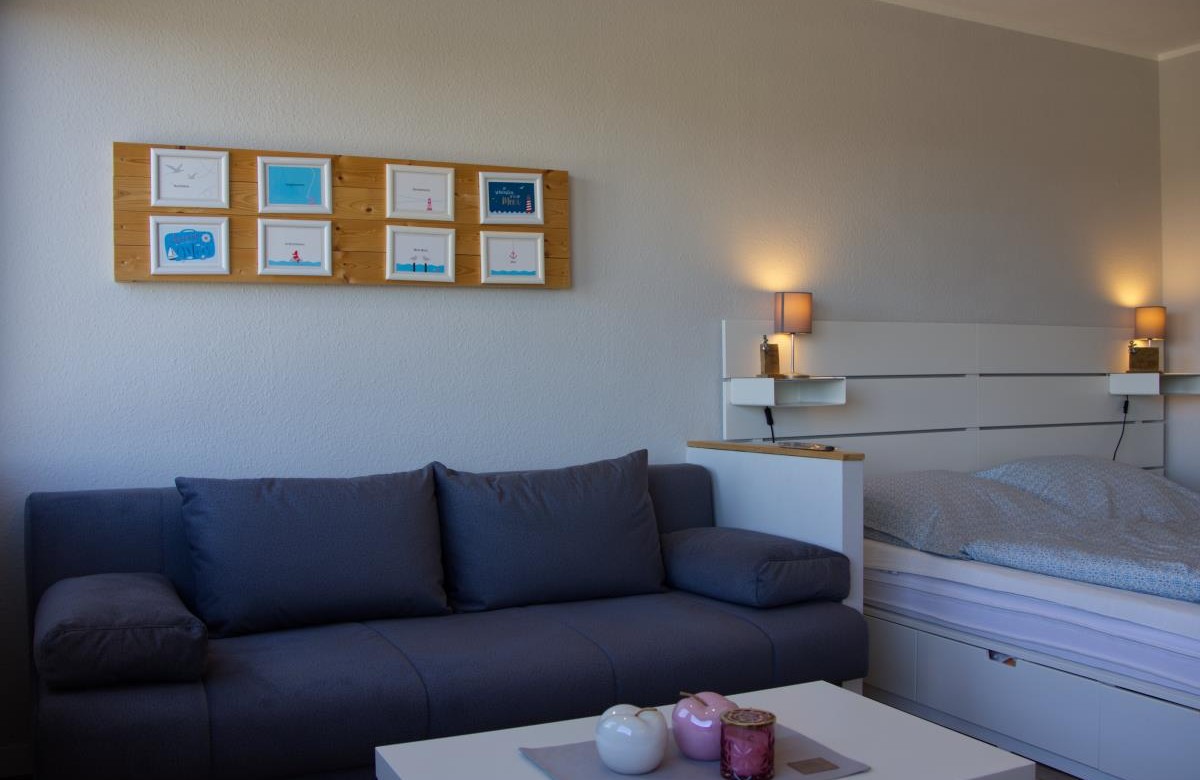 The vacation apartment on the south beach in Burgtiefe on Fehmarn is ideal for 2 to 3 people for whom a particularly short walk to the beach and a view of the water are especially important. Couples, friends and families, without dog, will feel right at home here if a balcony is not important to you.