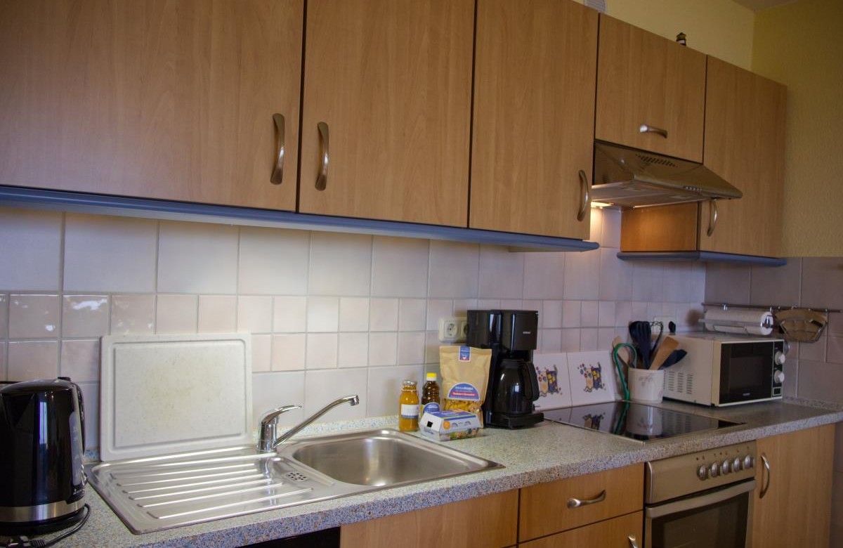 Perhaps you would like to put your shopping away first, and you have plenty of space for that in the kitchen and the fridge, where you can also prepare all kinds of delicacies. From simply heating up a frozen pizza to multi-course meals, anything is possible here. Of course, you can also make yourself a coffee, which you can enjoy with a piece of cake on the balcony, while the salty sea air caresses your face.