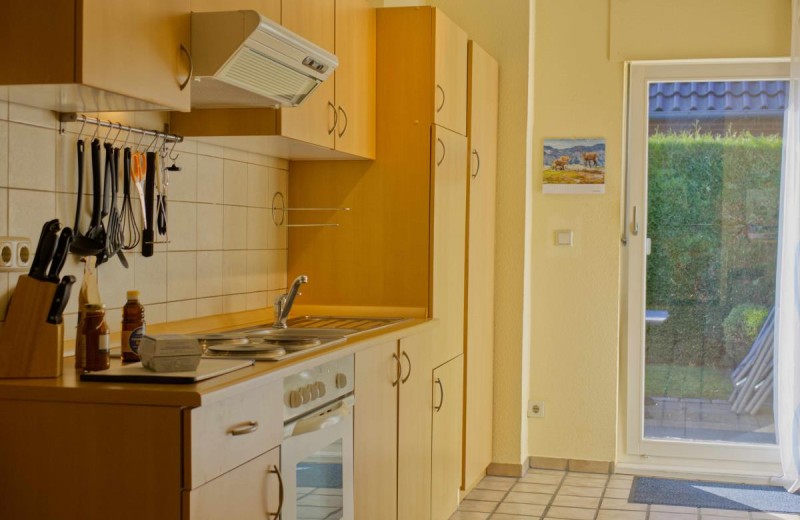 Enter your little vacation oasis and immediately feel the warm, inviting atmosphere. The open-plan kitchen is the heart of your vacation apartment, where living, cooking, and enjoying seamlessly merge.