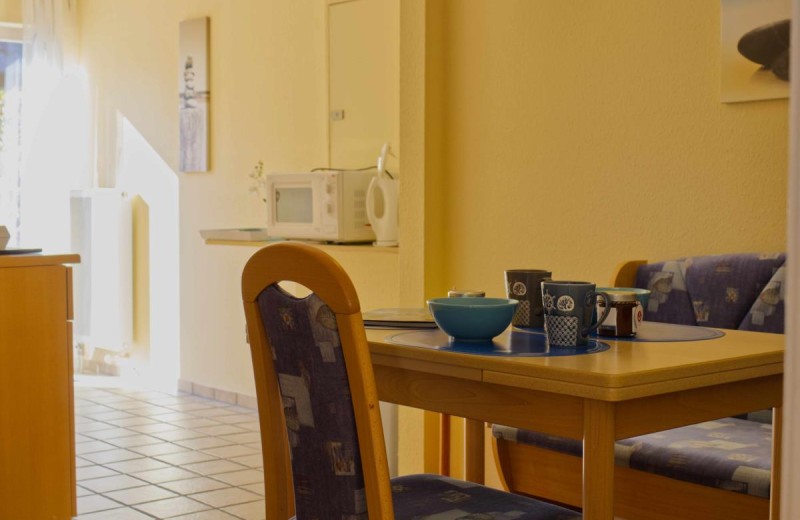 The fully equipped kitchen leaves nothing to be desired: 4-plate stove, oven, microwave, refrigerator with freezer compartment, and all the cooking utensils you need. Cook your breakfast while the coffee machine is already bubbling away, or prepare a delicious dinner in the evening. You can enjoy your meals at the cozy dining table while planning your day or reviewing the day's events.
