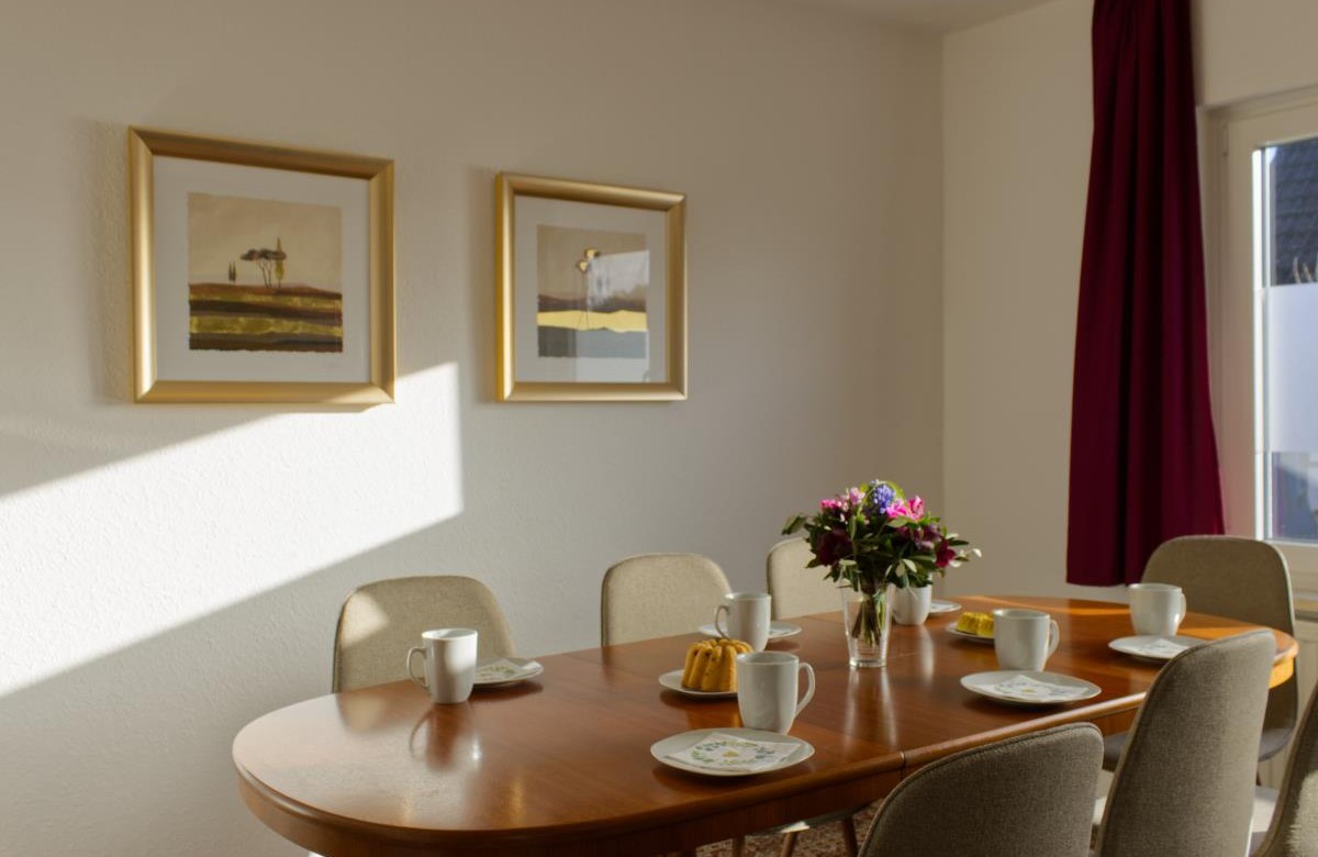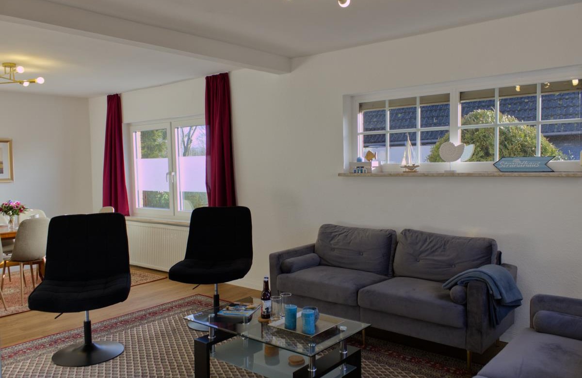 After parking your car in the private parking lot directly at the house, you enter the spacious vacation home through the small entrance hall. On the ground floor, you will find a spacious living room with a comfortable couch, armchairs, and a flat-screen TV with DVD player. Here you can make yourself comfortable after your excursions and relax together.